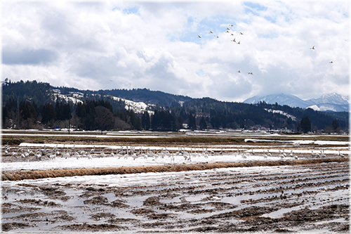 ☆今月の写真は、3月27日に菅沼峠を越えて、白川ダム湖に行く途中の玉庭で撮った「コハクチョウ」です。