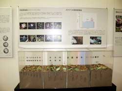 とくに関心したのは、カタクリの展示で、普通は地上部しか分からないのですが、地下部も分かるように地下の部分をガラス面にしてありました。樹木の羽田や内部構造などの展示もおもしろいものでした。![]() 茶室と露地風景、ここから先は別世界です | ![]() 掛け物を見る | ![]() 鉈篭に夏椿と京鹿子が・・・・・ |