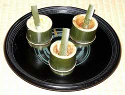その味噌も持ち寄りで、しかも私が青竹を切って入れ物を準備しました。その写真が右です。