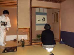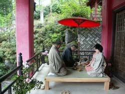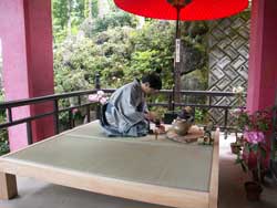 ![]() 青山庵 | ![]() 青山庵から露地を眺める | ![]() 青山庵でのお手前 |