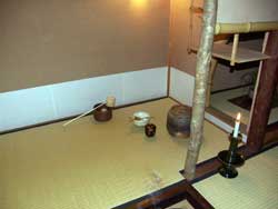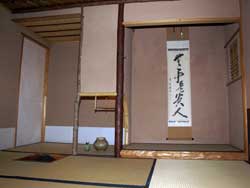 ![]() 伝承館の門構え | ![]() 清山庵の床 | ![]() 清山庵の道具組 |