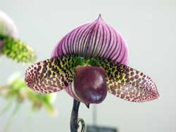 ![]() 世界らん展会場 | ![]() 日本大賞のパフィオ ![]() 「母なる地球」のディスプレー |