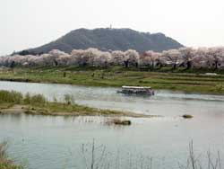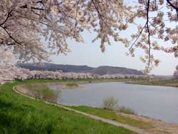 ![]() 白石川堤の桜 | ![]() 白石川堤の桜と屋形船 | ![]() 桜並木と蔵王遠望 |