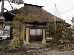平成20年2月6日、上山市の春雨庵に行ってきました。![]() 青山庵 | ![]() 懐石で大根を食べる | ![]() 青山庵でのお手前 |