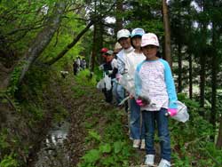 2012年5月10日、午前10時〜お昼まで、地元の三沢東部小学校の2年生と3年生、そして4年生たちといっしょに近くの山に入りました。