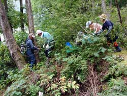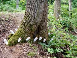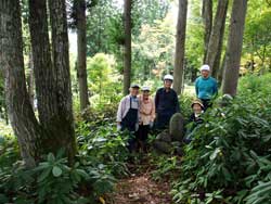 ![]() 草木塔の前で | ![]() ナラ枯れ防除作業 | ![]() 防除作業終了した樹 |