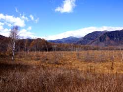 この右の参道のイチョウ並木は、11月7日に撮りました。とてもきれいで、参拝者の方々も、この葉を拾われていたようです。![]() 小田代ヶ原の看板 | ![]() 小田代ヶ原 | ![]() 戦場ヶ原 |