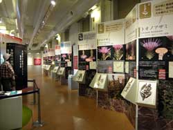 ![]() 三沢山野草展会場 | ![]() 展示されたオキナグサ | ![]() 万世山野草展会場 |