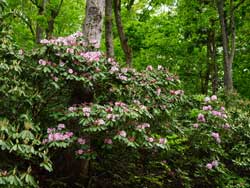 5月上旬からアズマシャクナゲが咲き始め、今は小町山自然遊歩道の入口から少し入ったところでたくさん咲いています。