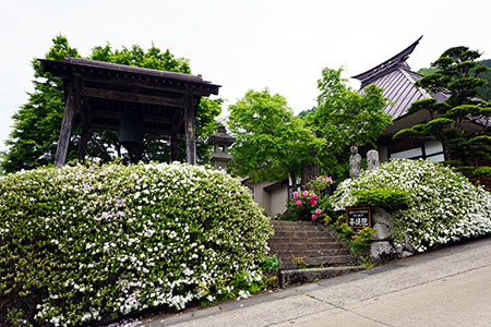 第26番札所「満願寺」は、安曇野市穂高牧にあり、「日本アルプスサラダ街道」を草深東部まで進み、川窪沢川を過ぎ200mほど先を斜めに左折して、道なりに進みます。