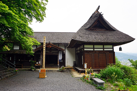 第14番札所「長楽寺」は、千曲市八幡にあり、開眼寺から先ほどの篠ノ井線の踏切を渡ってすぐを右折します。そして篠ノ井線に沿って進み、県道403号を右折し山道を進みます。1.4qほどから県道340号へ左折し、長野自動車道をくぐり道なりに進むと右側に長楽寺の駐車場があり、左側は姥捨公園になっています。