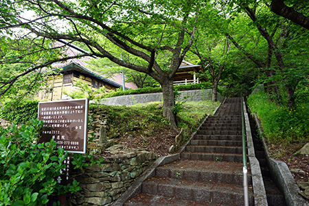 第2番札所「宗善寺」は、法善寺と同じ東筑摩郡麻績村上町仏眼山にあり、先ほどの道をそのまま走ります。九十九折りの道を270mほどで、信濃観月苑のところに着きます。