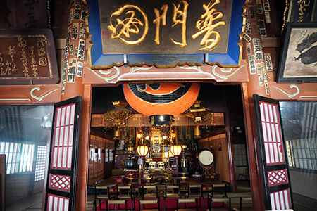 第6番札所「観龍寺」の朱印所の長雲寺は、千曲市稲荷山にあり、長谷寺から先ほどの篠ノ井線の踏切を渡り長野市道篠ノ井南357号から右折し、県道77号を進みます。そして稲荷山荒町の信号を右折し、ナビの案内で善光寺街道を進み住宅街に入ると門柱があり、右には「五大院長雲寺」、左には「國寶愛染明王」と彫られていて、そこから入りました。ここで第6番札所「観龍寺」の朱印をいただき、次は第13番札所「開眼寺」を目指します。