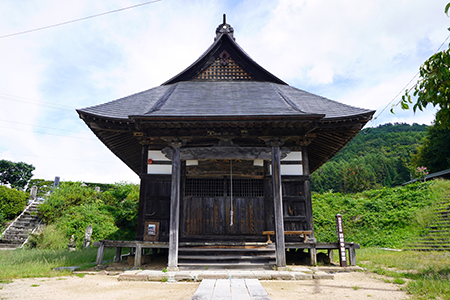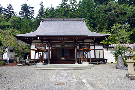 第1番札所「法善寺」は、東筑摩郡麻績村上町にあり、先ほどの道を戻ります。篠ノ井線の踏切を渡るとそのまままっすぐに進み、県道55号線から左折します。そして、麻績宿本陣跡の瀬戸屋の先から右折し、山に上って行きますが、200mほどで法善寺の駐車場に着きます。たしかに5分ほどで、時計をみると、14時22分でした。
