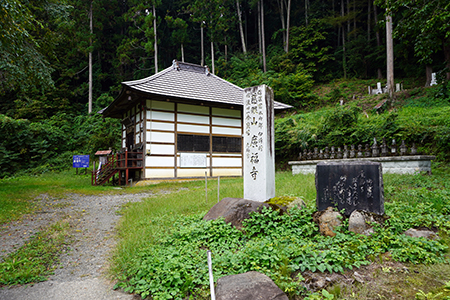 第31番札所「広福寺」は、上水内郡中条村御山里にあり、正法寺から先ほど通ってきた県道401号線を戻りそのまま進みましたが、右手前に曲がるところがわからず、そのまま進むと県道452号線になつてしまいました。そこで、途中から戻ると、先ほどは急カーブでわからなかったところから入るらしく、その間に「廣福寺」はまっすぐの矢印がありました。