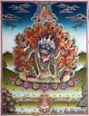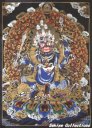 (画像サイズは46.4KB) これは1999年5月にネパールのメル友であるビノットさんに依頼して購入した大黒天(マハキャーラ)のマンダラです。非常に丁寧に描かれており、チベットの最も一般的な大黒天の姿をしています。ですから、お寺に描かれている大黒天も、このお姿が多いようです。