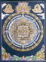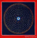(画像サイズは57.3KB) これは2002年3月11日にネパールカトマンドゥ市内のタメルで購入したものです。これもカーラチャクラの一種ではないかと思いますが、黒地に主に金とブルーを用い、とても細かく描いています。