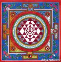 (画像サイズは95.3KB) これも上記と同じお店で購入したものですが、ヒンドゥー教系のマンダラで三角形の組み合わせで女性原理と男性原理の融合を表すといわれています。一般的には頂点を上にした三角形は男性原理を、下にした三角形は女性原理を示しているそうです。