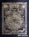 (画像サイズは48.9KB) これは2002年3月14日にネパールカトマンドゥ市内のタメルで購入したものです。これもカーラチャクラの一種だと思いますが、画面も大きく、内部も丁寧に描かれ、四方の龍も繊細で、全体に本金を使っていると思われます。