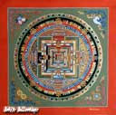 (画像サイズは98.4KB) これも上記と同じお店で購入したもので、描かれているのもカーラチャクラです。上記のものと違い、多色の雰囲気が良く出ており、お店にもこのようなマンダラが多かったようです。