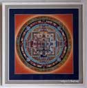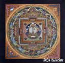 (画像サイズは62.9KB) これは2000年3月にネパールに行ったときに購入したマンダラです。場所はカトマンズのダルバール広場の一角のお店ですが、前日(4月8〜9日)にお釈迦さまのお生まれになったルンビニーに行った記念として求めたものです。
