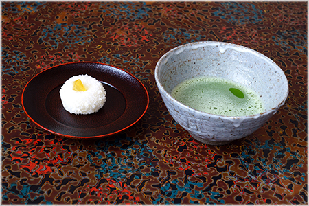 ☆左の写真は、10日に参拝された方たちからいただいたお土産で、乃し梅本舗 佐藤屋さんの菓銘「しろがね」でお抹茶にしました。