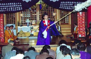 山伏による特別祈祷は、午前10時と正午の二度奉修され、古来より伝わる神斧や宝剣、法弓、そして「天地四方一切清浄之秘法」により、家族皆んなが大黒さまのような笑顔で毎日を過ごすことができるといわれています。