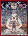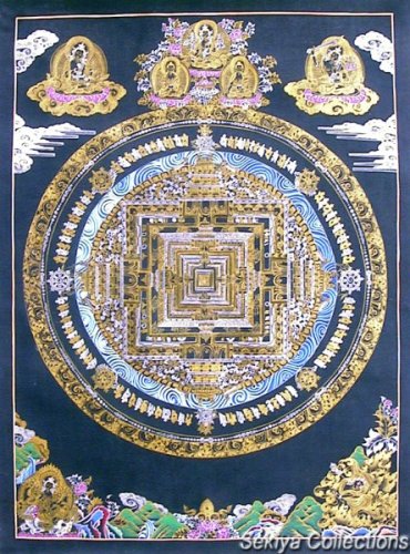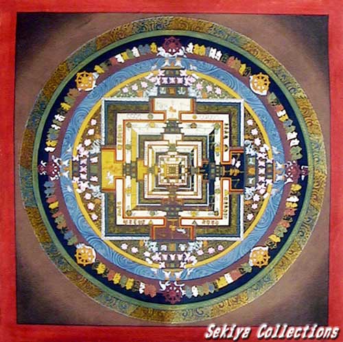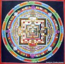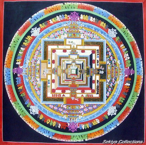 (画像サイズは98.4KB) これも上記と同じお店で購入したもので、描かれているのもカーラチャクラです。上記のものと違い、多色の雰囲気が良く出ており、お店にもこのようなマンダラが多かったようです。