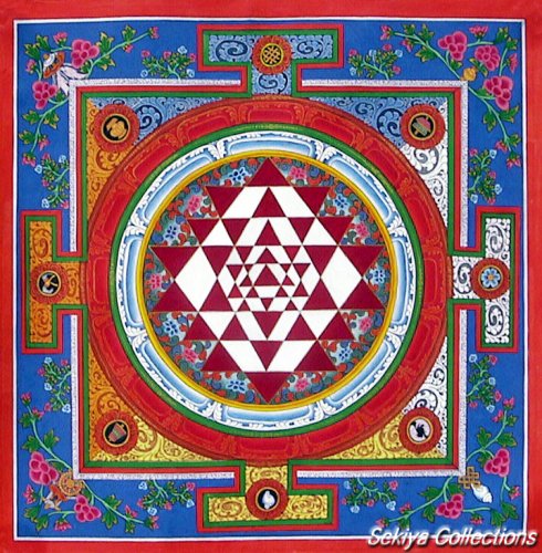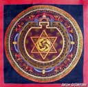 (画像サイズは95.3KB) これも上記と同じお店で購入したものですが、ヒンドゥー教系のマンダラで三角形の組み合わせで女性原理と男性原理の融合を表すといわれています。一般的には頂点を上にした三角形は男性原理を、下にした三角形は女性原理を示しているそうです。