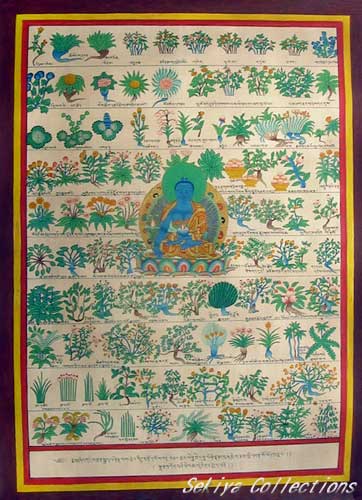 (画像サイズは43.1KB) これは2001年4月21日にネパールのカトマンドゥで購入したもので、説明では「Medical Budda with Herbal Plants As Per Tibetan Phylosophy」ということでした。簡単に言うと、薬師如来と薬用植物ということです。