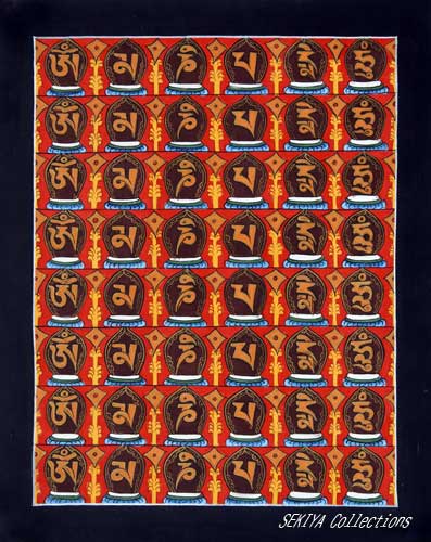 (画像サイズは52.0KB) これも2001年4月21日にネパールのカトマンドゥ市内で購入したもので、店主の説明ではカーラチャクラということでした。16番のは黒地に書かれていますが、これはぼかしの茶地に書かれています。