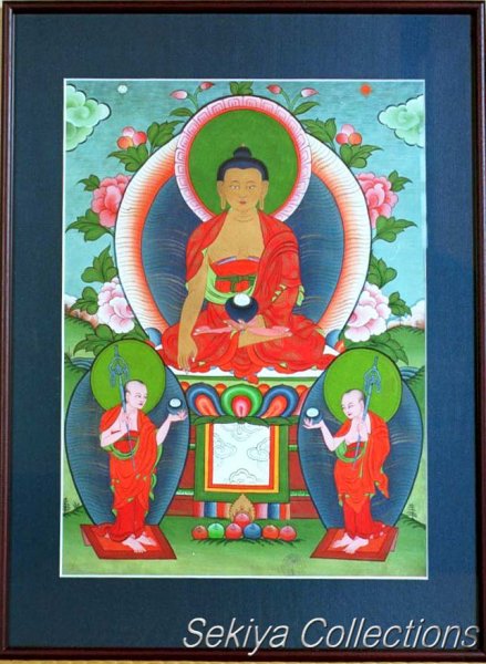 (画像サイズは68.0KB) これは1989年6月にインドのマハジャンが持ってきてくれたものの一つです。釈迦三尊像の形態ですが、向こうではあまり見かけないお姿です。しかし日本人には親しみやすいマンダラではないかと思います。