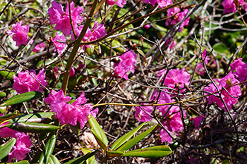 前回、シャクナゲの見頃について、「ここ小野川温泉のサクラは、例年なら4月下旬ころの開花ですが、アズマシャクナゲはその後に咲き出すことが多いようです。」と書きましたが、もうすでにサクラが咲きだしているので、予想以上に早く咲くかもしれません。