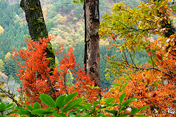 小町山自然遊歩道は、昭和59年より作りはじめ、今現在も仕事の合間をみて作業を続けています。植裁の中心は、なんといっても石楠花(シャクナゲ)で、日本ツツジ・シャクナゲ協会を初めとする全国各地の愛好者による献木が多く、日本や世界のシャクナゲなど370種類、6,000本が植えられています。そして、300種類をこす山野草も、なるべく自然のままに植付けられており、いつでも楽しめます。