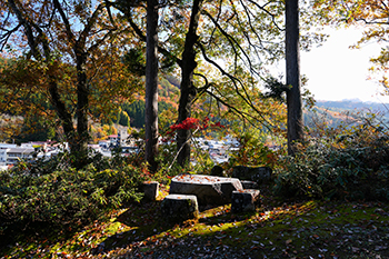 石のテーブルセット |  ドウタンツツジの紅葉 |