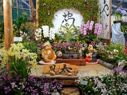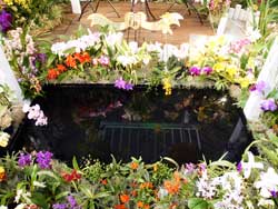 ![]() 水に映る蘭たちのディスプレイ |