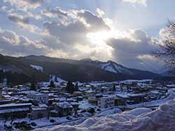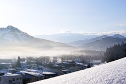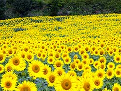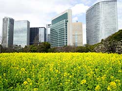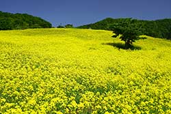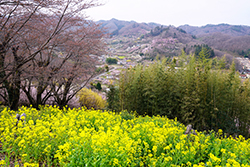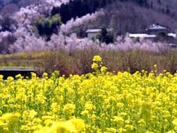 ![]() ナノハナがお出迎え | ![]() 花見山から福島市街を見る |