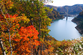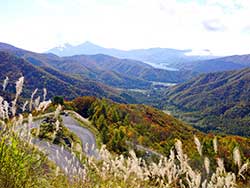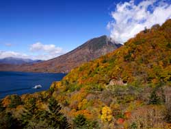 ![]() 中禅寺湖と山々の紅葉 |