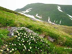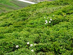 ![]() チングルマ群落と残雪 | ![]() アオノツガザクラ |