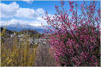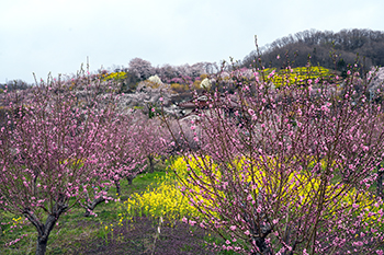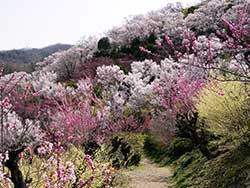 ![]() 花見山から向かいの山を見る | ![]() ボケの花 |