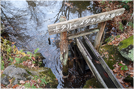 この台原森林公園には、「ホタルの里 ゲンジ蛍」と書かれた大きな看板があり、その近くにあったのがこの「ホタルとメダカの里水車」です。ここは窪地になっていて、水も流れていますから、夏になってホタルが飛ぶと町の明かりが見えないこともあり、ホタル観賞には最適なようです。